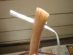| 長さは100cm弱、太さは最大で3cmくらい。 | 近くで見るとこんな感じ。 | 皮はナイフでスルスル剥けます。 |